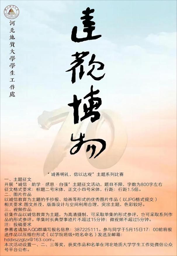 此外,本次诚信教育活动还面向全校同学开展了文字、图片、视频等系列征集活动,号召同学们以多种形式分享自身对于诚信的理解与体悟。