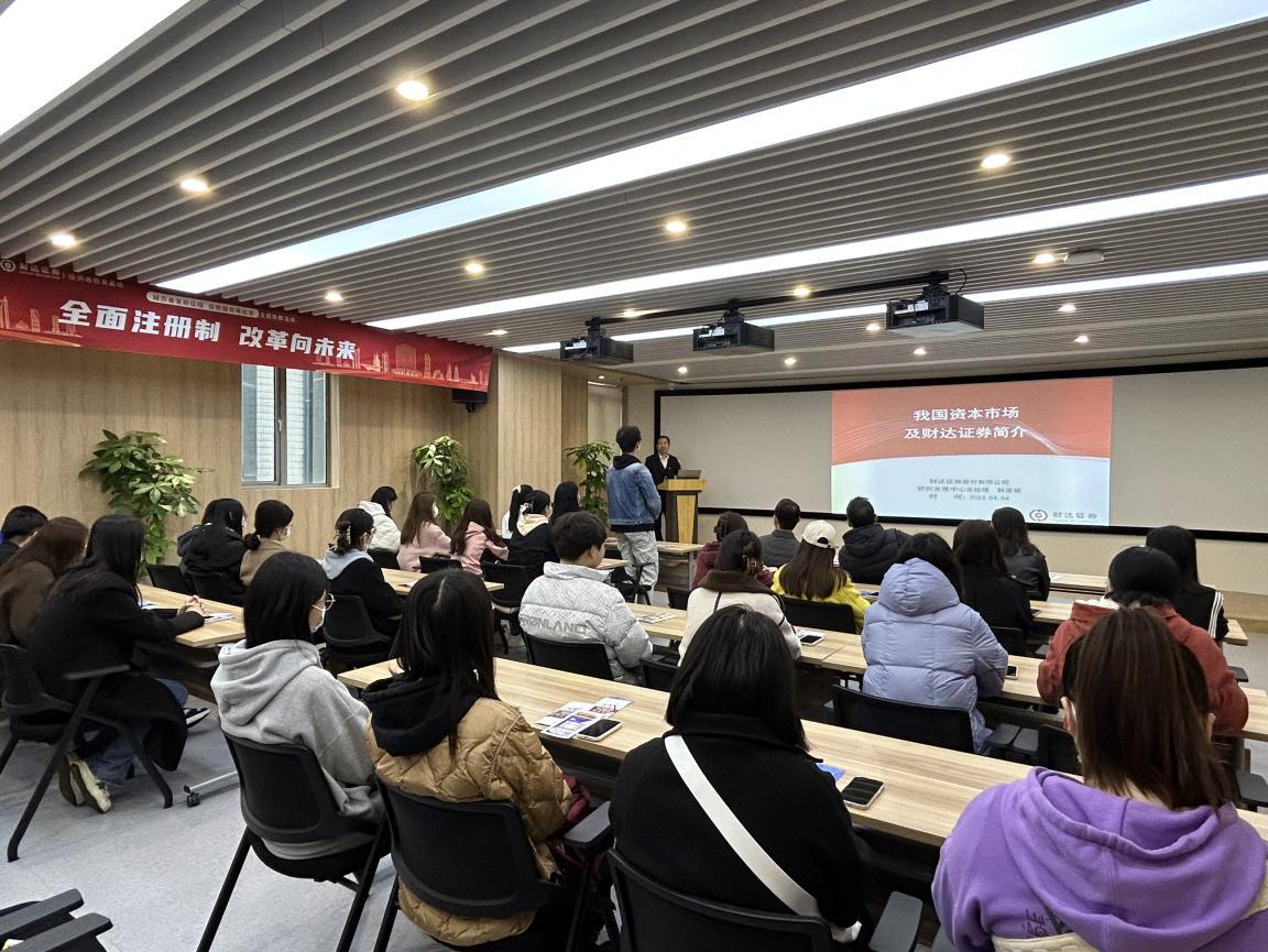 2023年4月4日,作为我院“访企拓岗促就业”系列活动之一,经济学院院长牛建高教授、金融学教研室主任郝志军教授、金融学教研室副主任曹楠楠副教授以及金融学专业研究生30余人共同走进财达证券公司投资者教育基地,开展“全面注册制 改革向未来”主题投教活动。