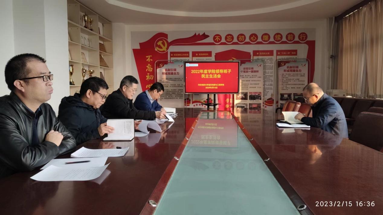按照《中共BB贝博艾弗森官网委员会2022年度民主生活会工作方案》的要求,2月15日下午,城市地质与工程学院领导班子在主楼536会议室召开了2022年度民主生活会。学院党委书记张卫华主持会议,院长袁颖、副院长贾磊、牛建广参加了会议。都沁军副校长应邀到会指导。党委副书记王辉因请假外出,其对照检查材料及批评意见由贾磊副院长代其在会上作了宣读。