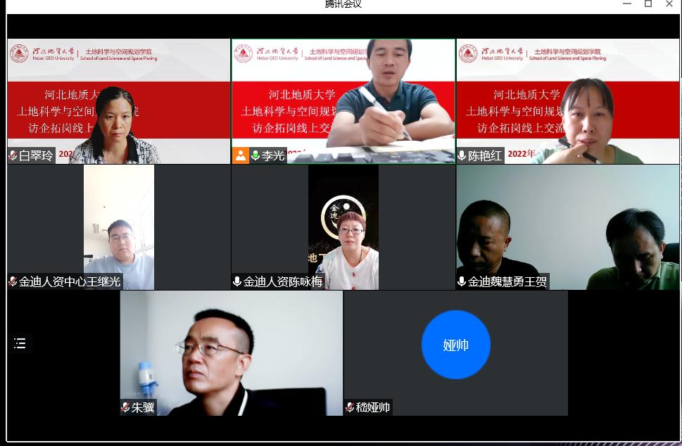 为贯彻落实党中央、国务院、省委和学校关于《访企拓岗促就业专项行动实施方案》精神,全力促进毕业生顺利就业、充分就业、高质量就业,土地科学与空间规划学院7月13日下午与保定金迪地下管线探测工程有限公司在腾讯会议举行线上座谈会。土地科学与空间规划学院党委书记白翠玲、副院长朱骥、党委副书记李光、测绘教研室主任陈艳红,保定金迪地下管线探测工程有限公司管线工程事业部总工魏慧勇、排水工程事业部副总王贺、人力资源主管陈咏梅、王继光等出席座谈会。