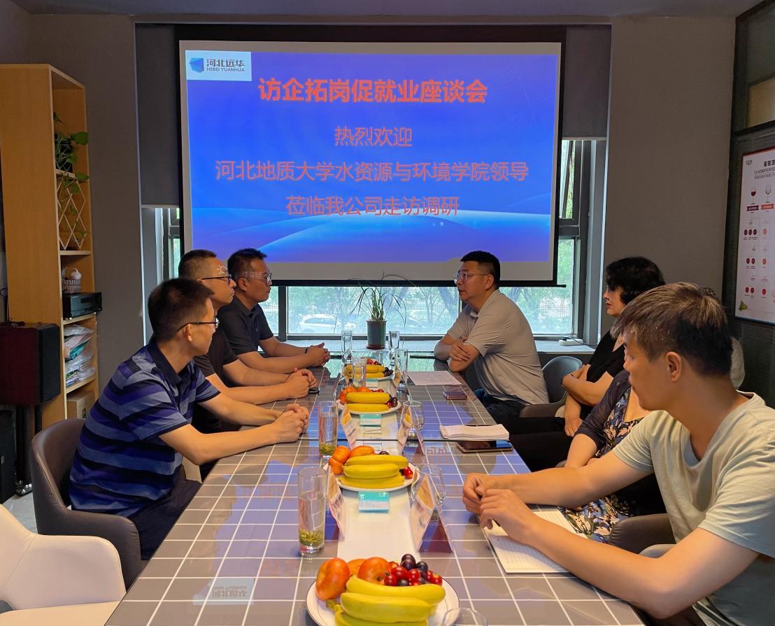 为贯彻落实党中央、国务院和省委决策部署,全力促进毕业生更加充分、更高质量就业,7月12日下午,水资源与环境学院党委书记李仁杰、副书记王伟及教师代表赴河北远华地质勘查有限责任公司开展“访企拓岗促就业”专项行动,与河北远华地质勘查有限责任公司总经理岳利鹏及公司代表进行了座谈交流。