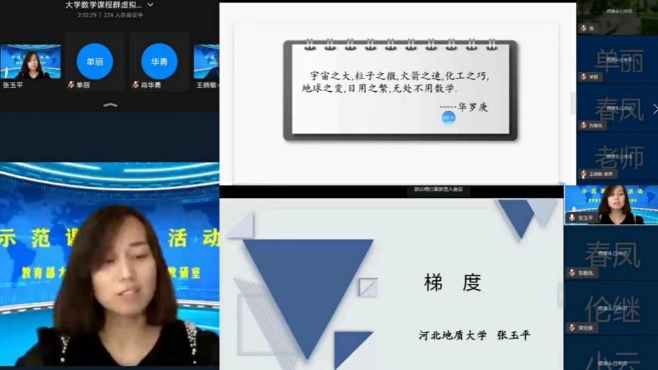 图1 张玉平在教育部大学数学课程群虚拟教研室示范课交流活动中作教学报告