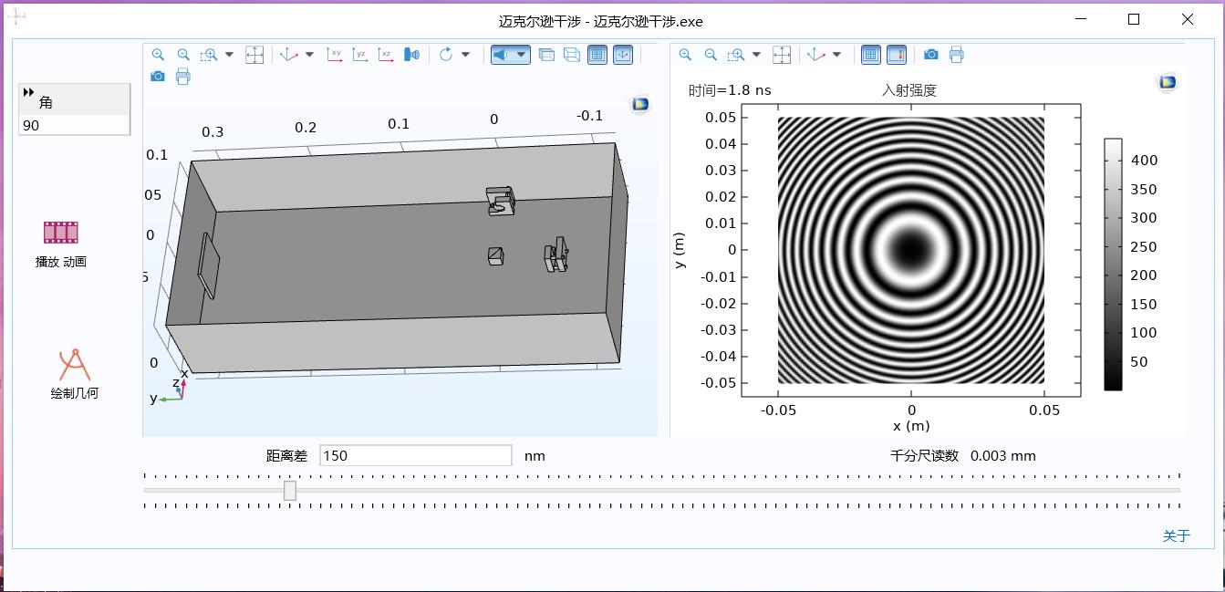 图7 张伟伟老师编制的迈克尔逊干涉实验的可执行软件