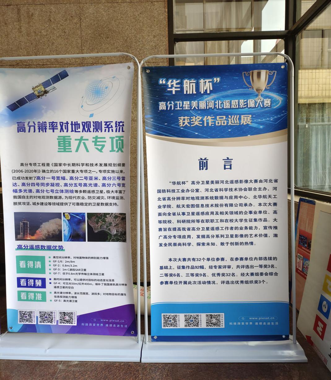 4月28日,“华航杯“高分卫星美丽河北遥感影像大赛获奖作品巡展第一站在BB贝博艾弗森官网开展。“华航杯“高分卫星美丽河北遥感影像大赛由河北省国防科技工业办公室、河北省科学技术协会联合主办,河北省高分辨率对地观测系统数据与应用中心等三家单位承办。大赛旨在提高我省高分卫星遥感工作者的业务能力,宣传推广高分专项应用,发掘高分系列卫星影像的艺术价值,激发全民崇尚科学、探索未知、敢于创新的热情。大赛共有32家单位参赛,BB贝博土地科学与空间规划学院教师积极组织学生参赛,通过比赛学生们能将所学遥感和地理信息技术应用到实际行业中。最终BB贝博获得大赛优秀组织奖一项,作品获得三等奖一项和优秀奖两项的好成绩。通过此次比赛,BB贝博学生的遥感与地理信息技术应用能力得到充分锻炼与提升,同时也坚定了更加努力地建设美丽河北的信念。