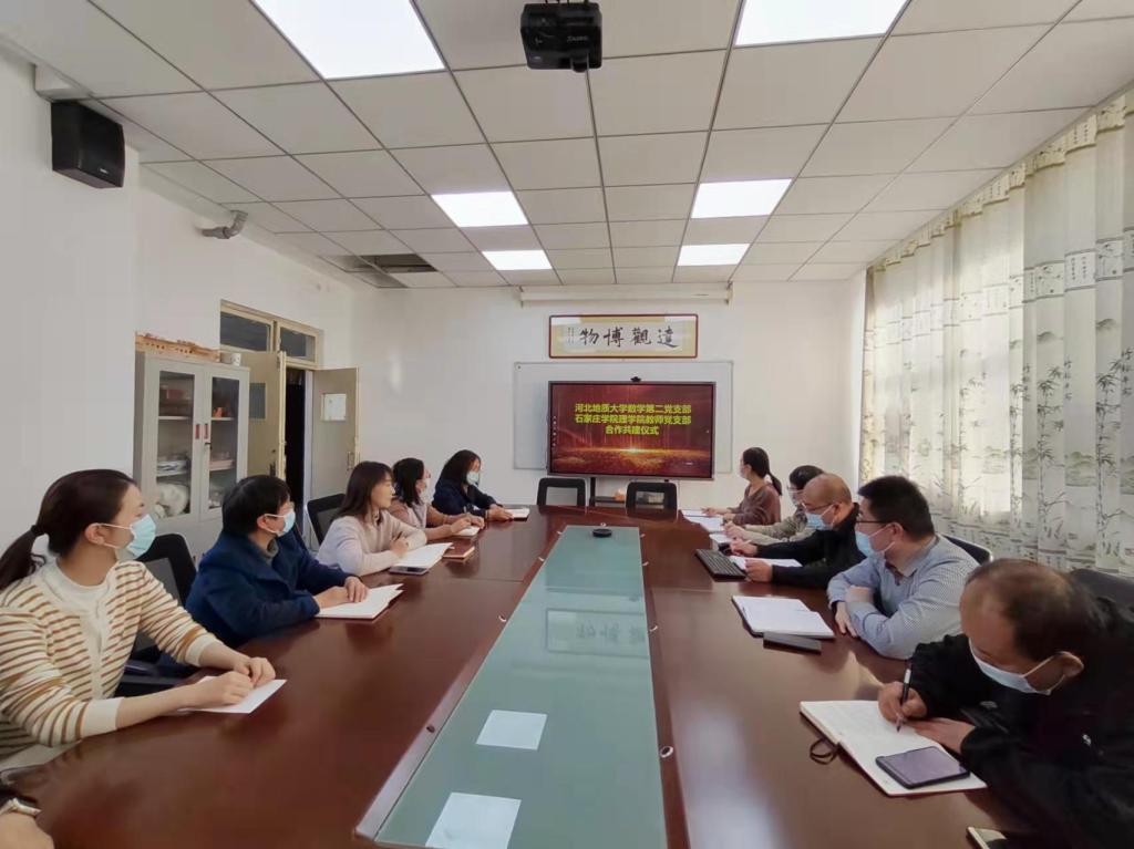 为探索党支部之间优势互补、资源共享、共同发展的党建新思路,按照“以共建促党建,以共建促了解,以共建促合作,以共建促发展”的原则,11月26日下午,数理教学部数学第二党支部与石家庄学院理学院教工党支部举行了以“党建共建、发挥合力、共赢未来”为主题的合作共建仪式,仪式通过网络会议的方式进行,数理教学部党委书记王春恋、副书记董昌州、石家庄理学院副院长陈兰新以及双方支部全体党员参加。数学第二党支部书记戈跃华主持。