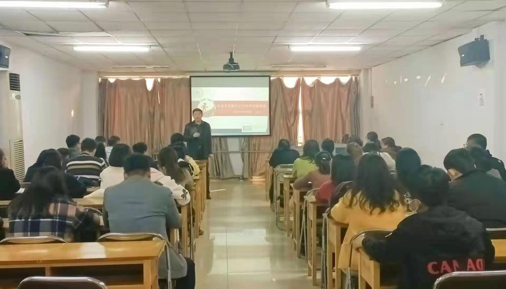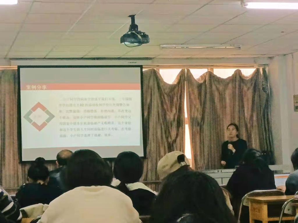 培训开始,王莉从国家、学校、辅导员三个层面深度剖析了优良学风的重要性,诠释了学风建设的内涵是大学生在校期间学习态度和校园学习氛围的综合体现。她又从课堂管理、宿舍氛围、第二课堂三个方面讲述了学风建设的构成。并根据大学四个年级的不同特点,制定了不同的学风建设目标:一年级习惯养成、夯实基础;二年级比学赶超、能量积累;三年级分类指导、精准帮扶;四年级扶危助困、厚积薄发。最后,王莉结合自身经验,列举了一些因学风不正而引起不良后果的典型案例,有理有据的证明了学风建设的必要性。