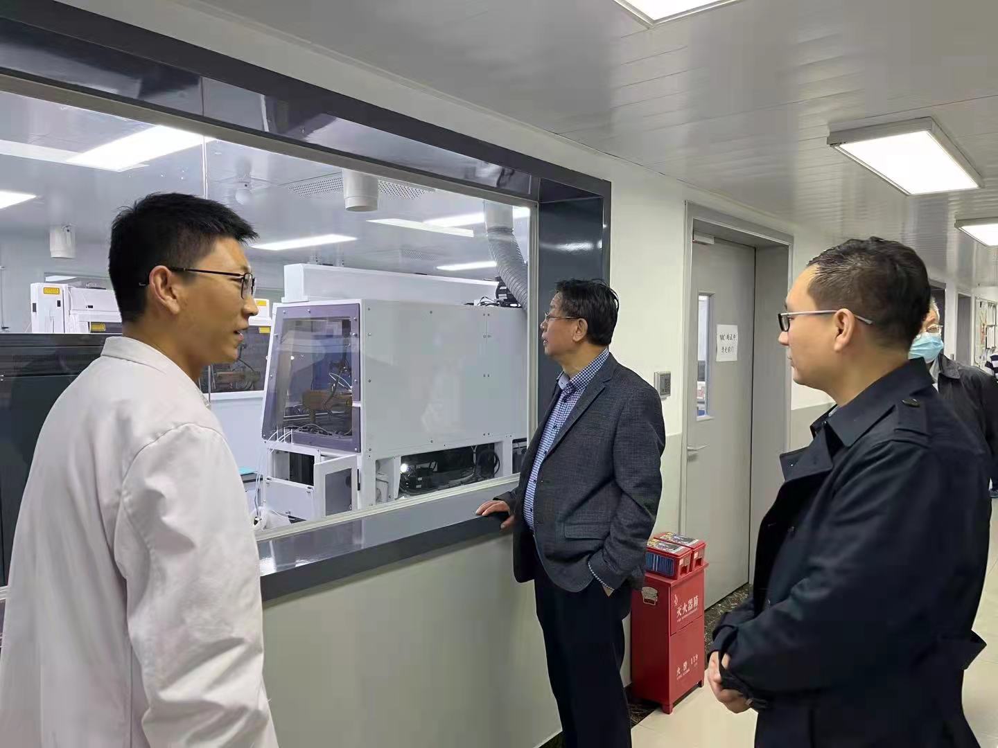 图1 省科技厅主管处郭处长考察实验室的大型仪器