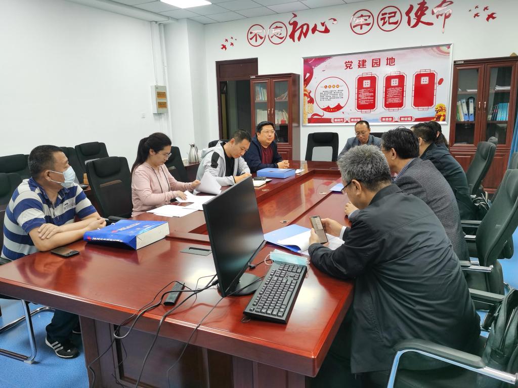 图2省科技厅主管部门及专家组与BB贝博国资处、财务处交流