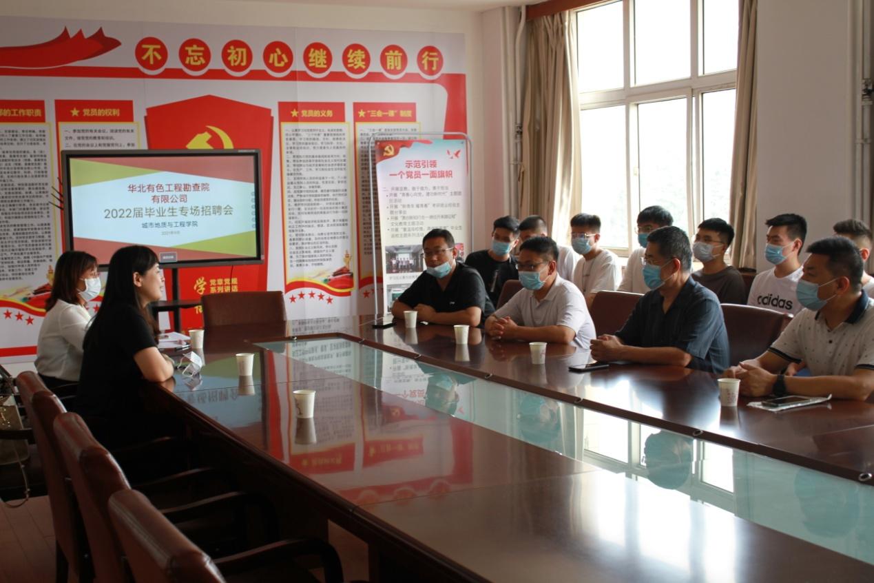 鉴于当前疫情形势,结合疫情防控要求,9月10日城市地质与工程学院在主楼536会议室召开2022届毕业生首场招聘会,正式开启了2022届毕业生校园招聘的序幕。参加此次招聘会的招聘单位分别为中勘冶金勘查设计研究院有限责任公司、华北有色工程勘查院有限公司。
