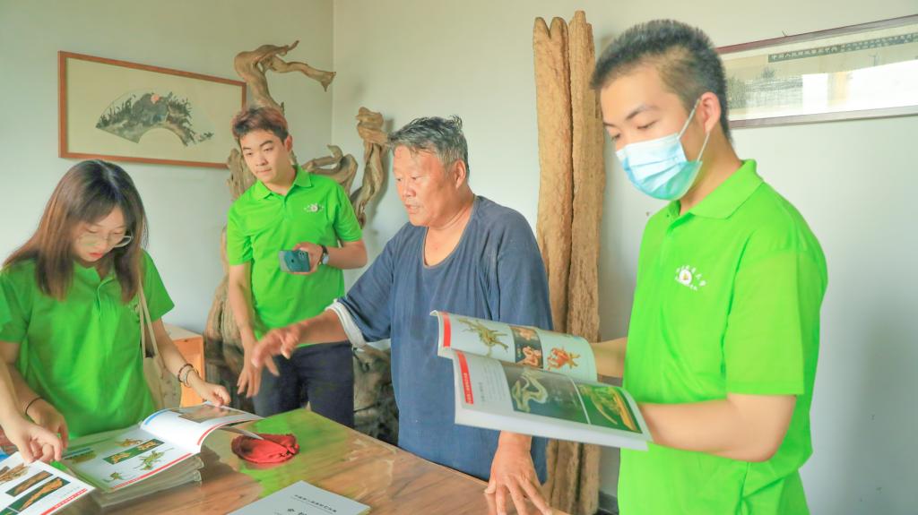 高恒老先生向小分队成员介绍根雕