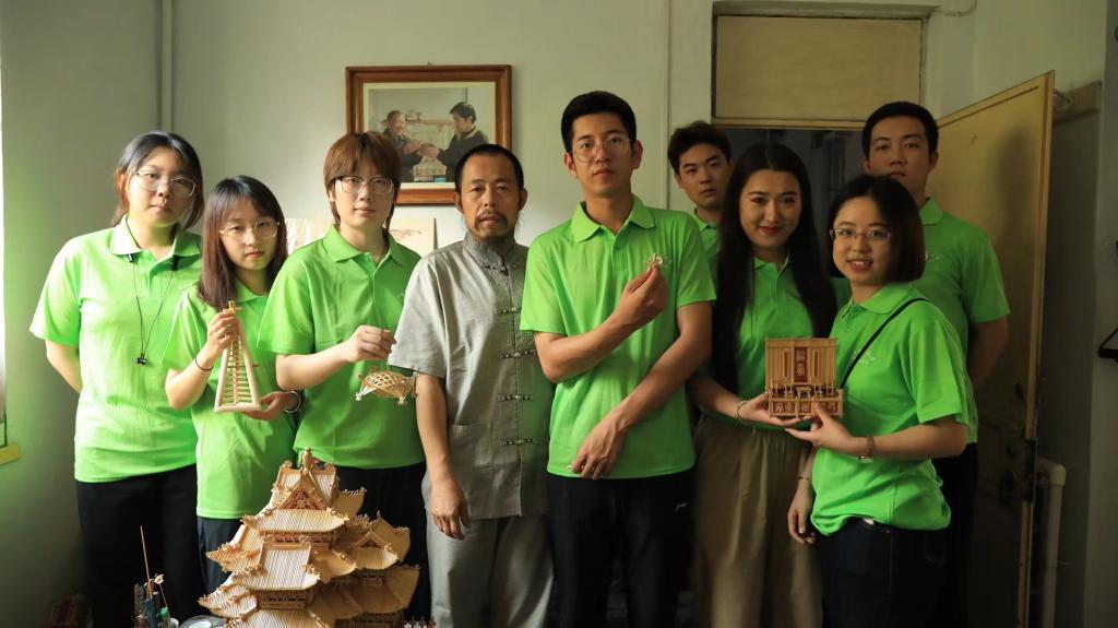 高粱秸秆工艺项目主要流传在石家庄市井陉矿区,本次实践小分队走访了高粱秸秆的传承人赵渊老先生,实地观察了高粱秸秆成品作品,详细了解了高粱秸秆的制作工艺。在走访过程中,老先生对一件件艺术品的创作过程进行了讲述,并简明扼要的将搭建结构的技巧倾授给了小分队。