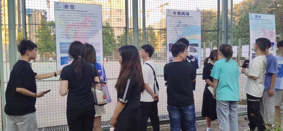 为进一步宣传冬奥会的相关知识,增强全校同学对冬奥会的了解和知晓度,校团委将2022北京冬奥会三大赛区、冬奥会七大项及冬残奥会六项等赛会内容制作成了专题宣传板进行展示,许多路过的同学前来参观并驻足停留,冬奥会储备志愿者现场为大家讲解。一步一展板,志愿者的讲解娓娓道来,既通俗易懂又生动有趣,兼具科普性和趣味性,使同学们进一步了解了冰雪项目的起源和发展。