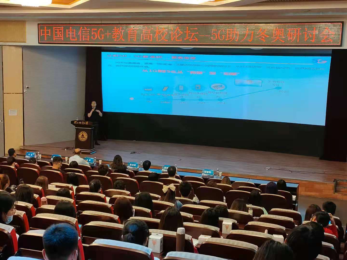 为普及“5G赋能,智慧冬奥”的应用理念,助力2022年北京冬奥会、冬残奥会成功举办,5月8日下午,校团委邀请中国电信集团5G高级工程师刘广宇在春秋讲堂举办“5G助力冬奥”探讨会。中国电信石家庄分公司裕华区副总经理苗泽惠、中国电信河北省分公司教育行业经理王彬、BB贝博团委书记郭雅洁及相关团委老师出席,300名冬奥会储备志愿者通过线上线下相结合的方式参加了本次探讨会。