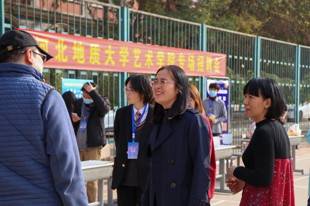 11月13日下午,艺术学院在北校区篮球场举办“BB贝博艾弗森官网艺术学院专场招聘会”,这是艺术学院成立以来面向影视摄影与制作、广播电视编导和播音与主持艺术专业组织的第一场专场招聘会。参加招聘会的有深圳市东信时代信息技术有限公司、石家庄广播电视台少儿人文化艺术活动中心、河北度德文化传播有限公司等10余家企业,招聘岗位主要涉及文案策划、摄影摄像、后期制作、新媒体运营等。学院党总支书记宋朝霞、院长韩毅、党总支副书记李蕊到场指导,与用人单位代表及2021届毕业生亲切交谈,分别了解用人单位招聘需求以及学生求职意向与规划。