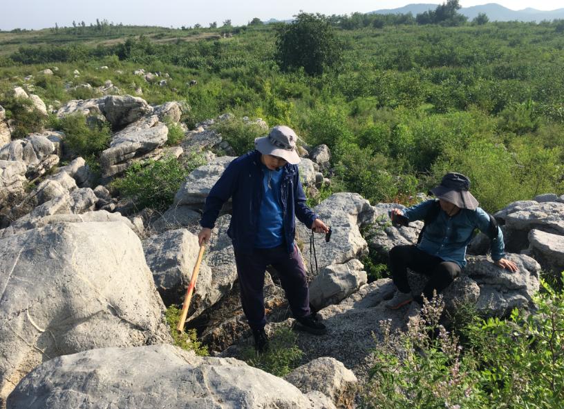 图2临城实习基地,水资源与环境学院老师实地指导地层倾角的测量