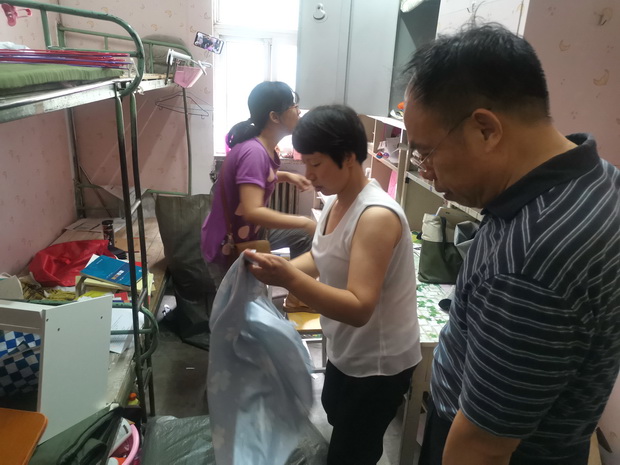 信息工程学院院长亢俊健同老师们一起整理学生行李物品