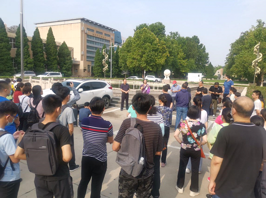 在主楼广场前举行整理学生行李物品动员会