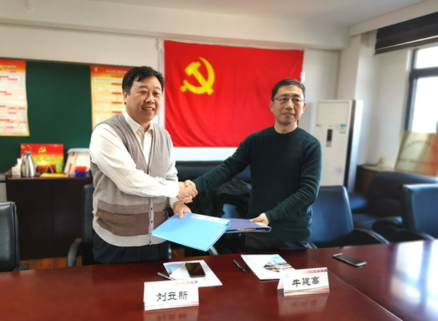 仪式上,刘立新、李悦和牛建高分别简要介绍两个学院基本情况,并就学科建设、科学研究、师资队伍建设、专业建设、本科生和研究生培养基层党建等方面进行了深入广泛地交流与探讨。在充分和友好交流基础上,双方就签订战略合作框架协议达成共识,并举行了签约仪式。