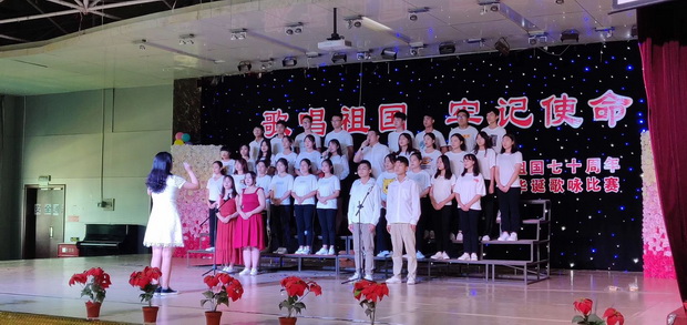 2018级城乡规划代表队首先登场,他们带来的《强军战歌》,令人斗志昂扬。随着《红旗飘飘》、《我和我的祖国》等一首首爱国歌曲的唱响,唱出了同学们对祖国河山的赞美与热爱,唱出了新时代新青年不忘初心、砥砺拼搏的报国热情,也唱出了BB贝博学子的积极进取、意气风发的精神面貌。教工代表队深情演唱的《歌唱祖国》点燃了全场,同学们激动地挥舞手中的国旗,与老师们一起合唱。昔日在讲台上培育学生的他们,此刻站在舞台上向培育了他们的的祖国母亲表达爱意,用歌声诉说与祖国的情深。