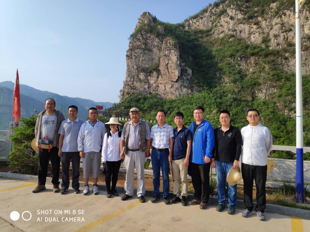 七月的井陉娇阳如火,资源学院张河湾地质填图实习在测鱼镇紧张而有序的进行着。7月14日,趁着教学实习的间隙实习队进行了一次红色地质路线踏勘。从测鱼镇沿阳坡路线穿越嶂石岩峡谷地貌西行约10公里,便来到了平定县“七亘大捷主战场” 遗址。一进纪念广场视线陡然开阔,北边一面巨型党旗横亘其间,台阶之上烈士陵园内翠柏累累,掩映着长眠于此的八路军战士。广场西边紧临峡谷,对面就是当年刘伯承率八路军129师三战三捷“伏击战”的主战场,西口悬关上的党旗诉说着当年战斗的激烈及我党的抗日救国的豪情。