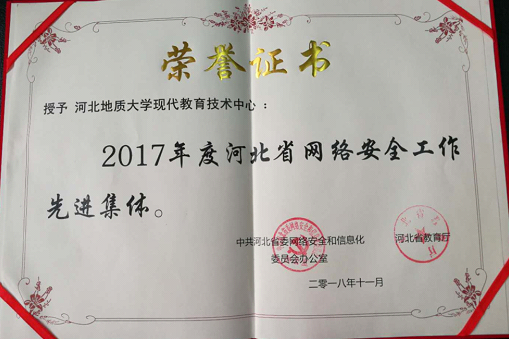 近日,中共河北省委网络安全和信息化领导小组办公室、河北省教育厅发布《关于表彰河北省校园网络安全工作先进集体和先进个人的通报》(冀网信办文〔2018〕15号),BB贝博现代教育技术中心荣获“河北省校园网络安全工作先进集体”荣誉称号,现代教育技术中心教师赵卫华荣获“河北省校园网络安全工作先进个人” 荣誉称号。
