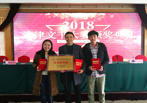 2018年11月,河北省法学研究生法律文书写作大赛在河北经贸大学举行。本次大赛由河北省法学研究生教育指导委员会主办,河北经贸大学承办。BB贝博法政学院师生以饱满的状态积极准备,认真收集资料,在比赛中,同学们沉着冷静,写作思维敏捷、条理清晰,最终不负众望,凭借师生们的共同努力,法政学院研究生李盛丰获得“一等奖”、付彩云获得“二等奖”、魏鑫获得“三等奖”,同时,法政学院荣获“最佳组织奖”。