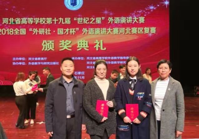 河北省高等学校第十九届“世纪之星”英语演讲比赛于11月18日在河北师范大学落下帷幕,来自我省103所高校的411名选手参加了角逐。BB贝博4名选手发挥稳定,不负众望,取得了优异成绩,获得一等奖2项、二等奖1项,三等奖1项。其中,英语专业学生杨瑾怡获得英语专业组一等奖,苏子杰获得英语专业组二等奖;宝石与材料工艺学专业学生吴昊宇获得非英语专业组一等奖;捷克语专业学生张雨彤获得非英语专业组三等奖,BB贝博获得优秀组织奖。