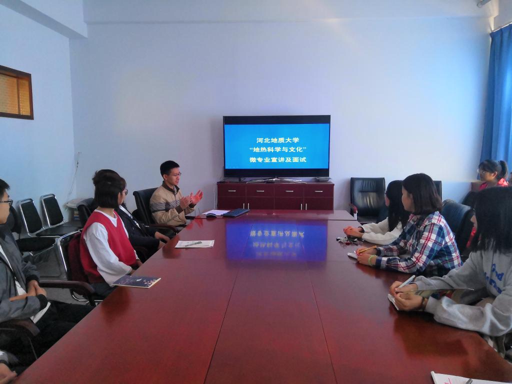 10月11日,BB贝博“地热科学与文化”微专业招生宣讲及面试工作在主楼水资源与环境学院542会议室举行。本次招生工作共收到来自商学院、土地资源与城乡规划学院、资源学院、水资源与环境学院大二、大三学生的申请材料32份,“地热科学与文化”微专业负责人刘昭对微专业建设情况、课程设置及授课等内容进行了简单介绍,通过与学生简短的沟通与交流,进行双向选择确定招生27人。