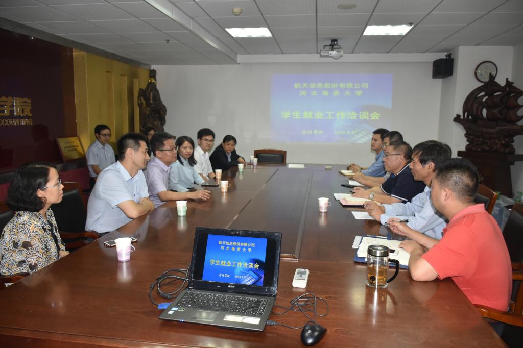 许继哲就本次企业校园招聘宣讲情况进行说明,对学校在双方合作中的一贯支持表示感谢,他对马上开展的订单培养、共享实验室建设提出了具体建议,对办好航天信息学院提出进一步设想。