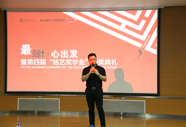 6月14日,艺术设计学院第四届“铭艺奖学金”颁奖典礼暨“最设计 心出发”主题讲座在北校区多功能厅隆重举行。艺术设计学院院长齐勇、党总支书记许晓辉,北京铭艺装饰总经理赵学忠、副总经理李雅楠、设计总监沈皓出席典礼,本届奖学金获得者和2017级艺术设计学院全体学生参加活动。颁奖仪式由艺术设计学院广告学教研室老师钱越主持。
