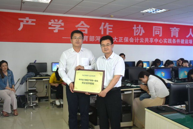双方领导还为“正保产学研一体化校企合作院校”揭牌,并就进一步开展产学合作协同育人达成共识,双方将在互联网+会计教育改革,财务云共享中心,管理会计人才培养方面开展深入合作。本次合作项目为学生搭建了接触实务的平台,不仅提高了学生的动手能力,而且促进了学生从核算型会计向管理型会计的思路转换。