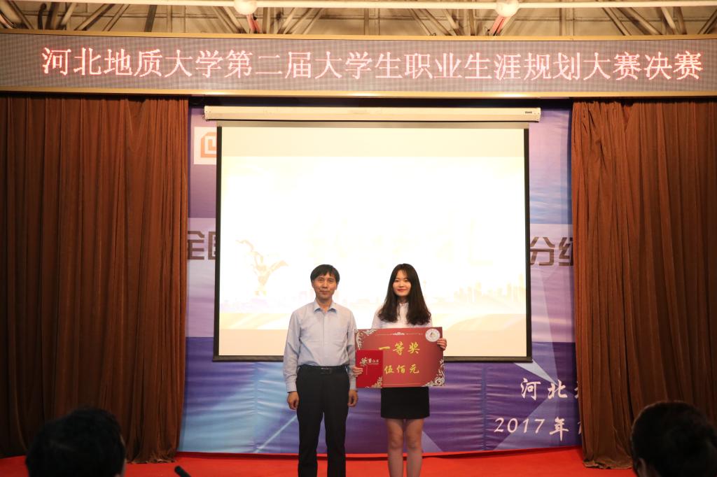 就业指导与服务中心主任齐宝辉为大赛一等奖获得者颁奖