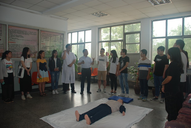 活动第一站是校医院。院长杜利勇就学生就诊、转院、医保等方面问题进行了解答。张佳运医生就“如何进行心肺复苏和人工呼吸”作了详细讲解,普及日常急救知识和基本技能,并示范具体操作过程。同学们听得格外关注,回答问题积极踊跃,并纷纷上场练习操作。