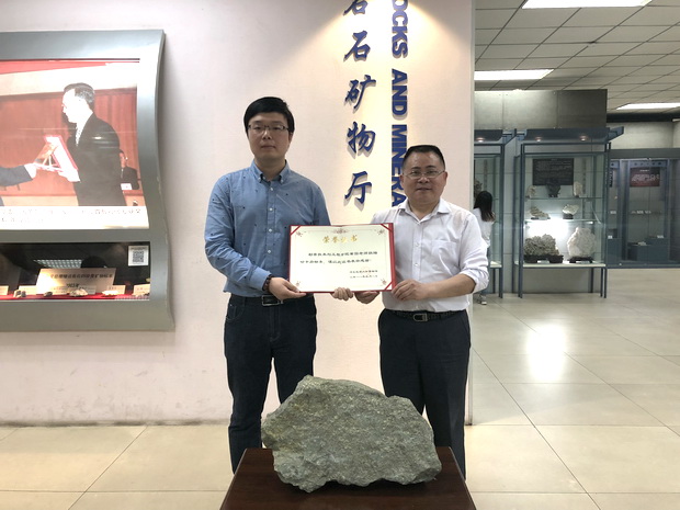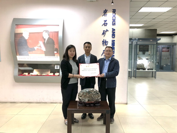 近日,BB贝博勘查技术与工程学院黄园老师向博物馆捐赠产自青海同仁的矽卡岩标本1件,勘查技术与工程学院黄万顺书记代表2008届毕业生向博物馆捐赠产自台湾的七彩玉石1件、2008届毕业生周喜军向博物馆捐赠纳米比亚共和国硬币2套。博物馆馆长吴文盛代表博物馆接收这批标本并逐一登记入库,同时为标本捐赠人颁发捐赠证书,以示感谢。