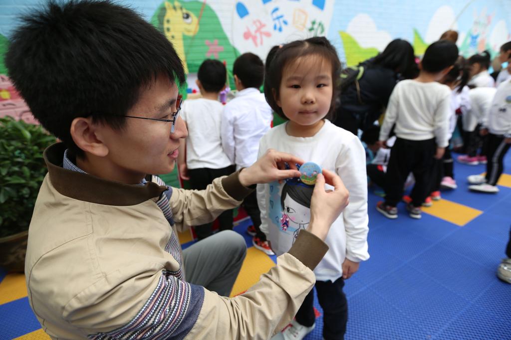 为幼儿园小朋友佩戴活动徽章