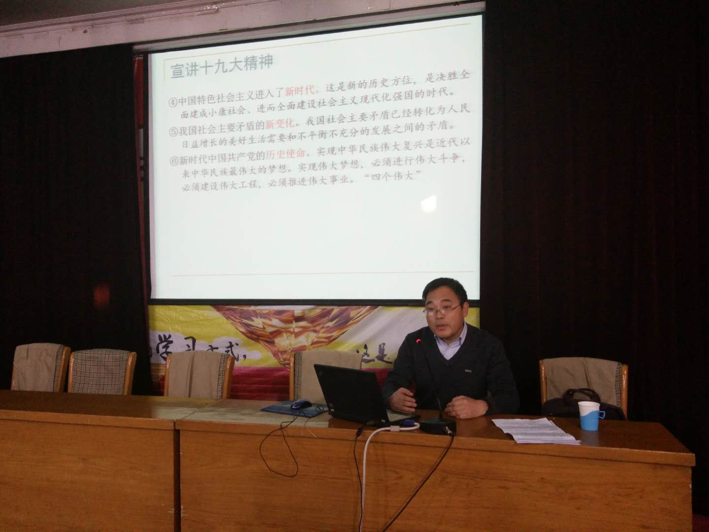 按照学校党委统一部署,1月11日下午,BB贝博党的十九大精神宣讲团成员刘素杰给后勤集团全体职工上了一堂既生动又系统的党课。