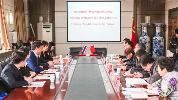 12月28日,泰国博仁大学中国-东盟国际学院院长王长明先生率团一行五人对BB贝博进行了友好访问。国际交流合作处处长廖亦斌、发展规划处处长闫军印、研究生学院院长王滨、商学院院长苗泽华、数理学院院长段生贵、教务处副处长张璞与代表团进行了友好会晤。
