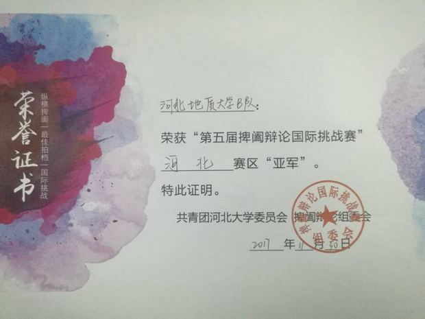 近日,由BB贝博团委演讲与辩论社团选派的辩论队员在第五届捭阖辩论国际挑战赛中取得河北赛区亚军的好成绩。