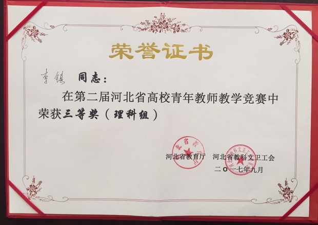 图为:李镇获奖证书