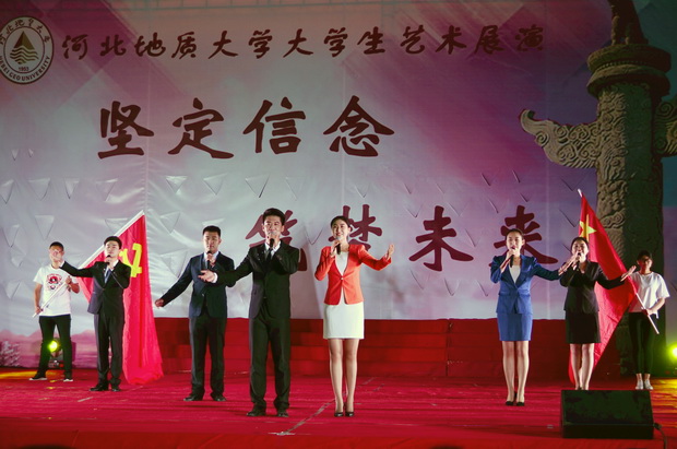 在主持人热情洋溢的开场白中,展演拉开序幕。首先是健美操团带来的《博彩青春》,处处透着蓬勃的活力,台上台下氛围高涨;民舞团精彩的舞蹈表演《梦飞扬》,曼妙的舞姿与动人的音乐相得益彰,表现出青年们为祖国而奋斗,为理想而上进的风采。第二篇章中,桑尼舞蹈团带来的《梦醉黄河》,独具创意地将陕北民歌与拉丁舞相融合,粗犷中不失细腻,展现了别具一格的舞蹈魅力。土地资源与城乡规划学院带来的《相约未来》,用舞蹈的形式表现出他们努力学好专业知识,立志为祖国做贡献的信念。经贸学院和模特团带来的《军中豪情》刚柔并济,独特的方式展现出豪情壮志。第三篇章中艺术设计学院表演的舞蹈《我的祖国》,表现出青年们坚守祖国的信念;阳光合唱团带来的《中国梦 你我的梦》,用有力的节奏,完美唱响了心中理想。影视学院的《蚂蚁》用新颖的朗诵的形式,展现出当代青年负重前行却不忘梦想,赢得在场观众共鸣。整场晚会精彩纷呈,其中商学院题材新颖的舞蹈《茉莉花》让人印象深刻、外国语学院用英语、法语、中文倾情合唱的《心中有梦》、尤博主持团带来的逗趣相声《我要穿越》和天籁器乐团带来的《长城之征》等节目也为增添了更多亮点。