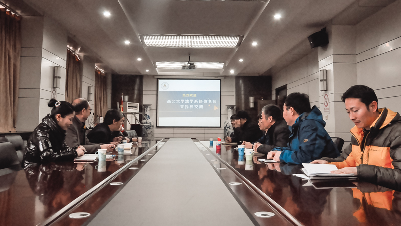 之后双方在友好的气氛中开展了交流活动。参加本次交流的双方成员有:西北大学地质学系党委书记喻明新,党委副书记李青彦,副主任陈丹玲、孙二丽,水文地质学科带头人、BB贝博校友康卫东教授;BB贝博水资源与环境学院院长许广明、原院长杨小荟,资源学院副院长王立峰、勘查技术与工程学院副院长袁颖等地学类学院负责人以及陈康、曹静杰、杜江民、陈雪等青年教师。王立峰主持交流活动。