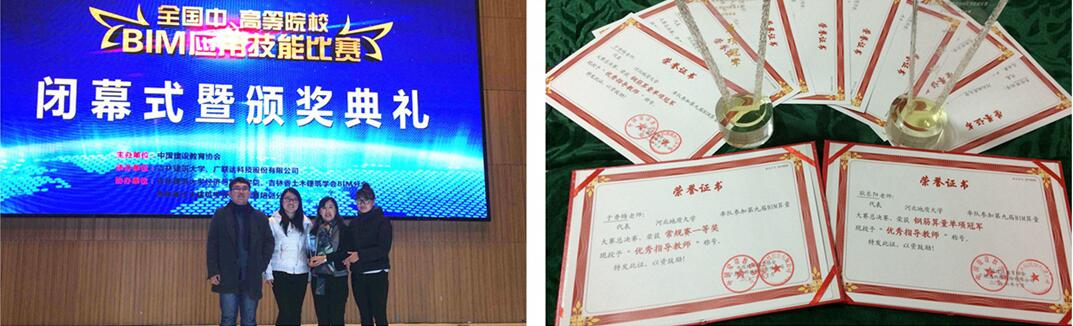 10月23日,2016年全国高等院校BIM应用技能大赛圆满落幕。BB贝博2013级工程造价专业学生王迎丽、赵艳锋、李佳博三位选手参赛,最终他们不负众望,荣获BIM钢筋算量单项冠军、BIM算量常规赛团体一等奖的佳绩。BB贝博代表队由于香梅、耿东阳两位老师指导。