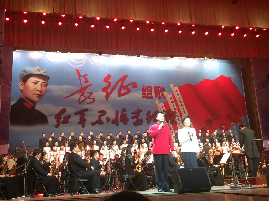 一曲《红旗颂》拉开整场音乐会序幕。红色经典史诗《长征组歌》带领观众回顾了长征艰难的历程,讴歌了中国工农红军在党中央毛主席的领导下,不屈不挠、无私无畏的革命精神,歌颂了红军指战员英勇奋战、敢于胜利的英雄气概。