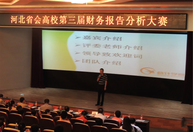 2016年6月19日,河北省会高校大学生财务报告分析大赛决赛在BB贝博春秋讲堂举行。本次大赛由BB贝博会计学院主办,河北师范大学、河北经贸大学、河北科技大学、石家庄铁道大学及BB贝博艾弗森官网5所省会高校共10支队伍、50多名学生组队参赛。各高校在前期的校内选拔赛中,各选出两支队伍参加本次决赛。