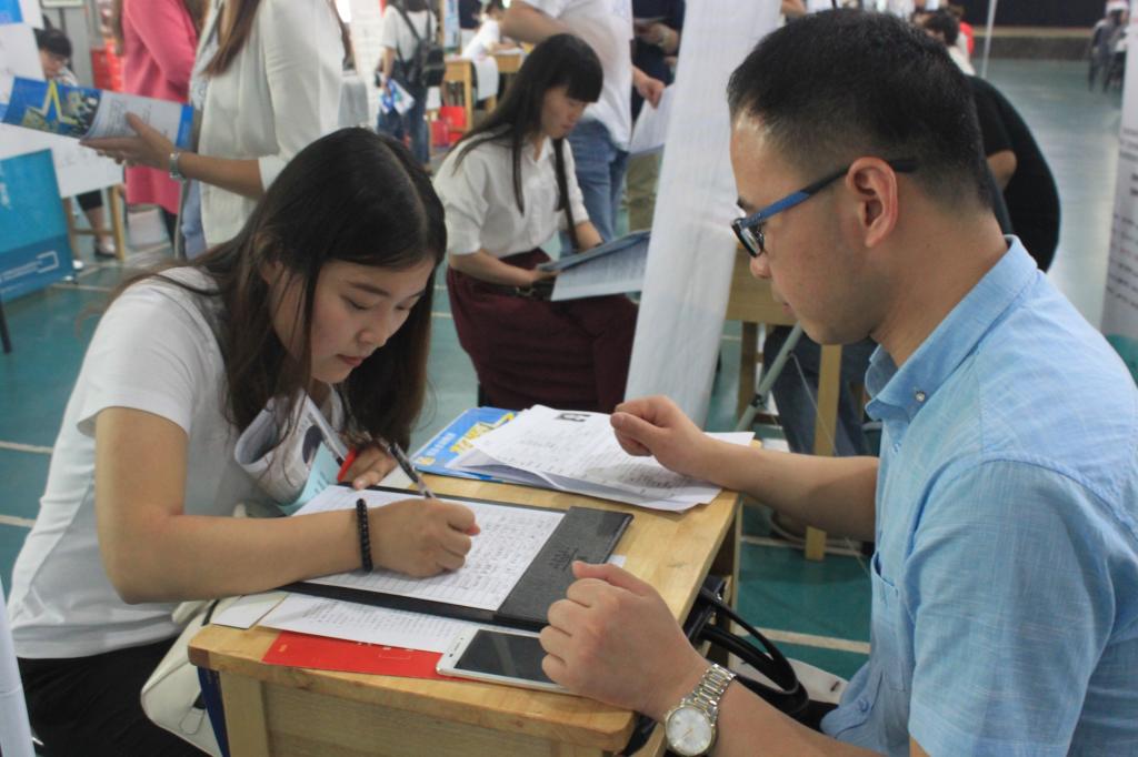 招聘会现场毕业生踊跃投递简历,气氛非常热烈,。用人单位与学生就企业招聘职位情况、用工制度、薪酬待遇等一系列问题进行了面对面的沟通交流,此次招聘会用人单位共收到简历400余份,达成意向200余人。从本次招聘单位提供的职位和专业需求情况看,共涉及44个本科专业、18个专科专业,其中本科专业中市场营销、金融学、人力资源管理、计算机科学与技术、国际经济与贸易、会计学等需求量较大,专科专业中市场营销、财务管理、电子商务等需求量比较大。