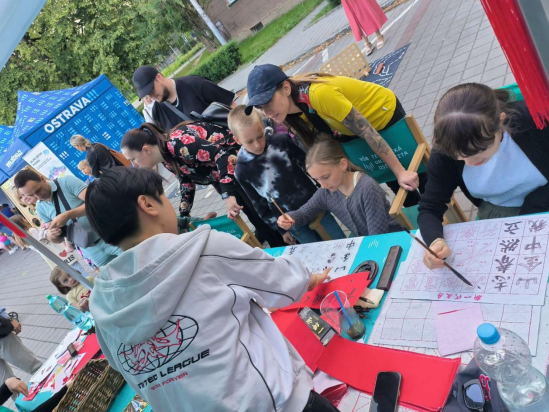 6月21日至22日,奥斯特拉发技术大学“生活·艺术”文化节在捷克马特耶·科佩茨基广场隆重开幕。BB贝博孔子课堂也走出校园,积极投身当地这一年一度的庆典活动。活动现场设置了书法、剪纸等互动体验区。参与者们在孔子课堂老师的指导下,尝试用毛笔书写汉字,亲手制作剪纸作品。许多参与者表示,这些活动让他们对中国艺术的细腻与意境有了更深的体会。