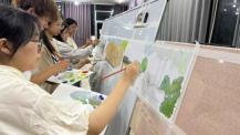团队将沂南县马牧池乡常山庄村作为核心实践基地。这里是沂蒙红嫂精神的发源地,留存着23处革命遗址,“沂蒙母亲”王换于、“红嫂原型”明德英等英雄的事迹在此代代相传。成员们深入田间地头和农户家中调研,聆听红嫂后人的回忆,搜集历史影像资料和老物件,感受烽火岁月的军民鱼水情。随后,他们用炭笔素描和丙烯绘画,创作了《沂蒙红嫂纪念馆》等主题作品,这些画作生动再现红嫂事迹,将抽象革命精神转化为可视艺术形象,悬挂于村史馆或村民活动室,成为当地红色教育的新载体。
