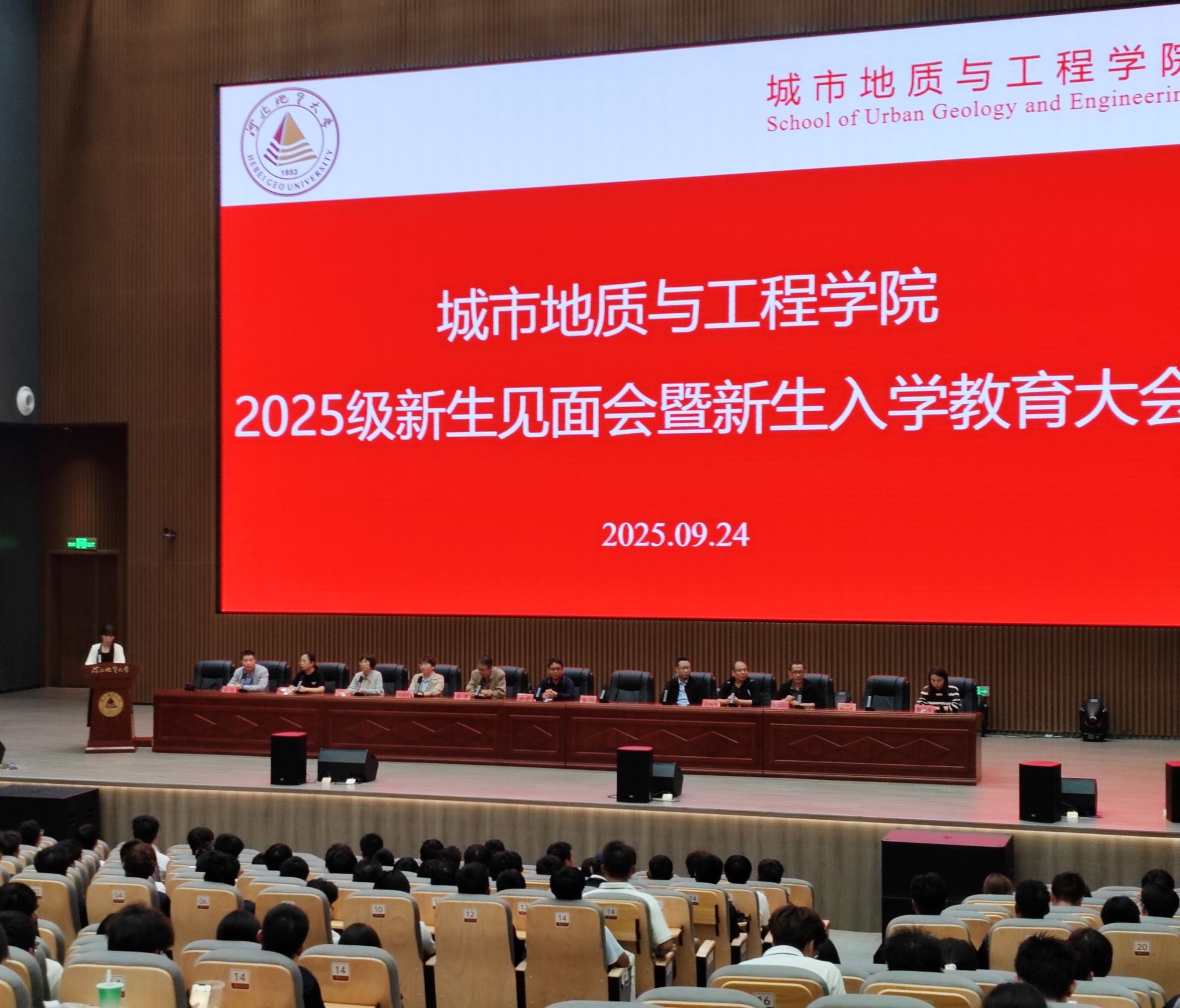 为帮助新生更好的适应大学的学习生活,9月24日中午,城市地质与工程学院2025级新生见面会暨新生入学教育在春秋讲堂召开。学院院长袁颖、土木工程系主任李源、地质工程系主任王晓明、工程管理系主任耿东阳、各专业教研室主任谌会芹、喇海霞、霍晓燕、陈松、杜国梁,新生辅导员郭晨燕及学院全体新生共360余人参加了此次会议。大会由院党委副书记李蕊主持。
