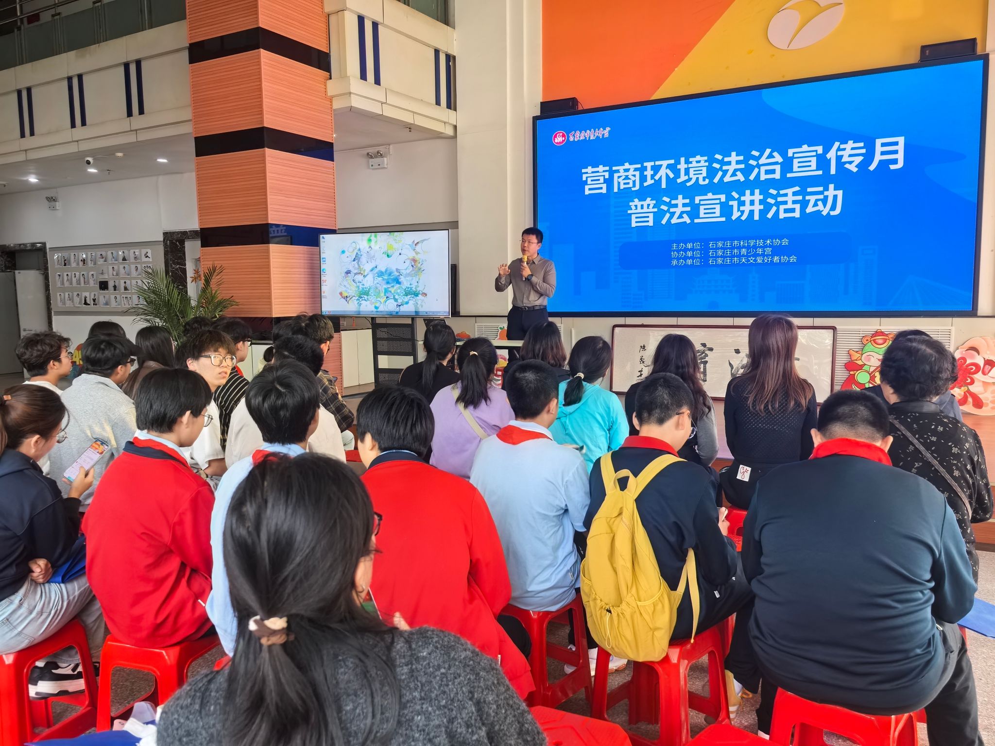 为深化师生党员法治意识与纪律观念,落实石家庄市营商环境优化部署,进一步打通校园教育与社会法治实践联结通道,9 月27日,水资源与环境学院组织师生党员代表,参与市科协在石家庄市青少年宫主办的“营商环境法治宣传月”普法宣讲活动。学院以党建为引领推动普法与纪律教育深度融合,既为师生党员成长注入法治与纪律力量,也为此次跨单位普法活动增添青春党建活力。