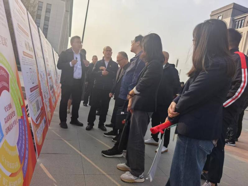 国经集团党群工作部部长王更,人力资源部部长、第一党支部书记张青,石家庄环保基金管理有限公司党支部书记、执行董事郭建鹰等一行20余人首先出席了BB贝博“BB贝博艾弗森官网‘红耀双地’党建成果展”启动仪式。随后,全体来访交流人员到慕水广场参观了党建成果展,经济学院党委副书记赵明为他们介绍了经济学院党委近年党建主要成果。
